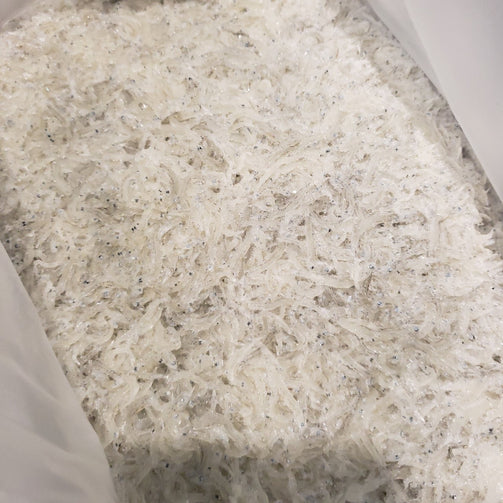 瀬戸内産の釜揚げシラスです。一番人気のある細かくて純度100%のものをご用意しました。細かいものだけを選りすぐり、水揚げ後すぐに釜で炊き上げ、魚のもつ塩加減だけで全くの無添加です。300gパック、500gパック、1kgパックとバリエーションをご用意しております。冷凍。