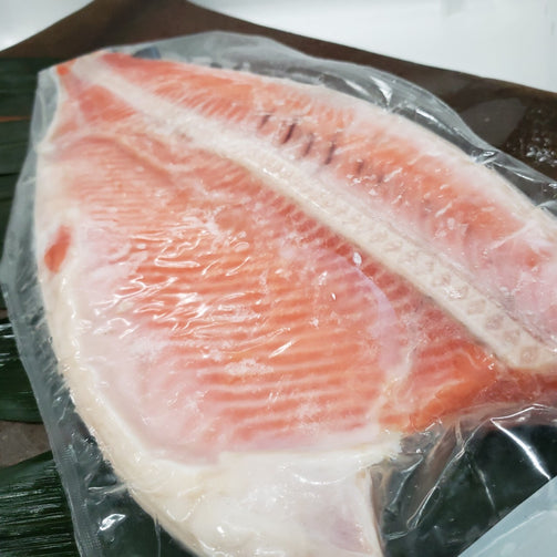 チリ産の銀鮭を塩に漬け込んだ骨付きのフィレ(半身)です。脂のりもよく塩加減も絶妙なのでリピートが絶えません。1枚1.3〜1.5kg前後。冷凍。